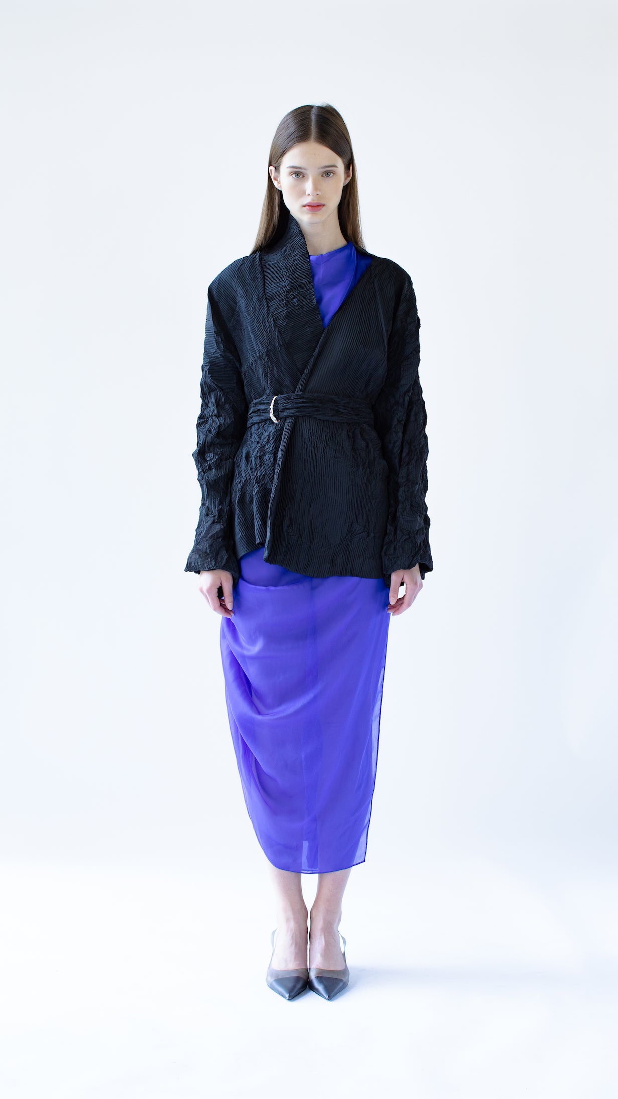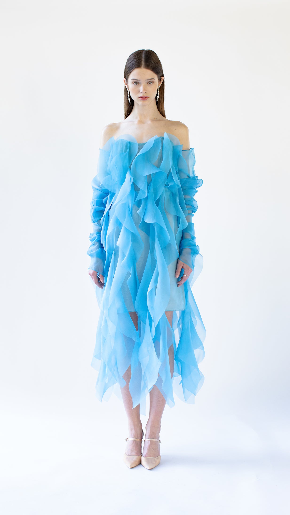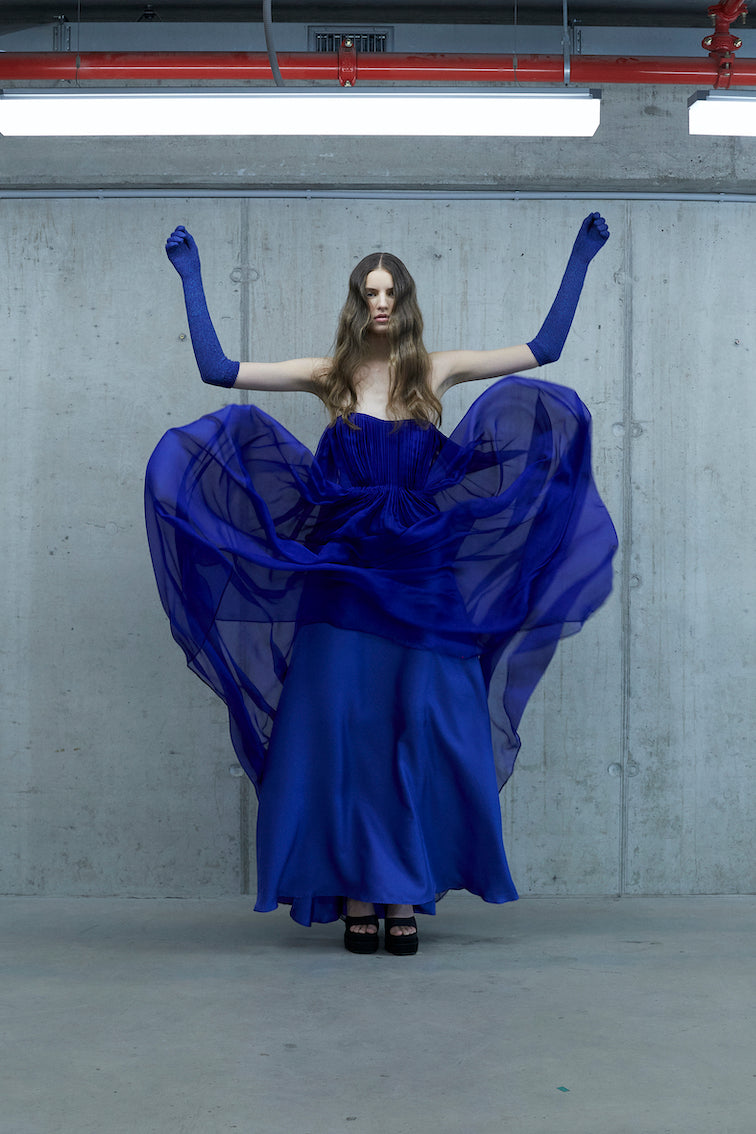 Silky fabrics such as chiffon, taffeta, organza or crinkled materials are meant to evoke the lightness, subtlety and individual forms that working with glass entails.