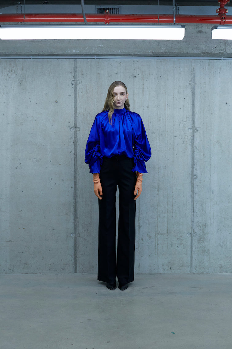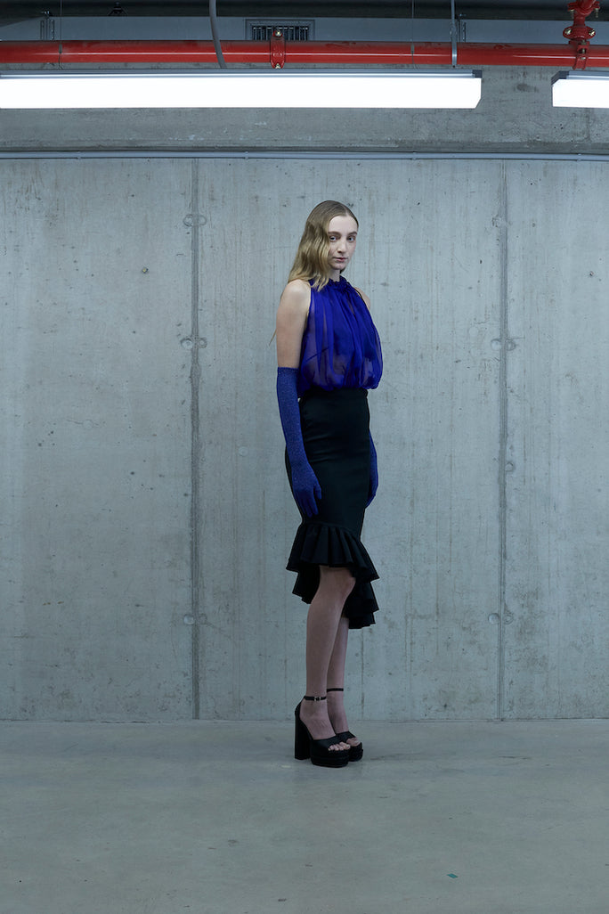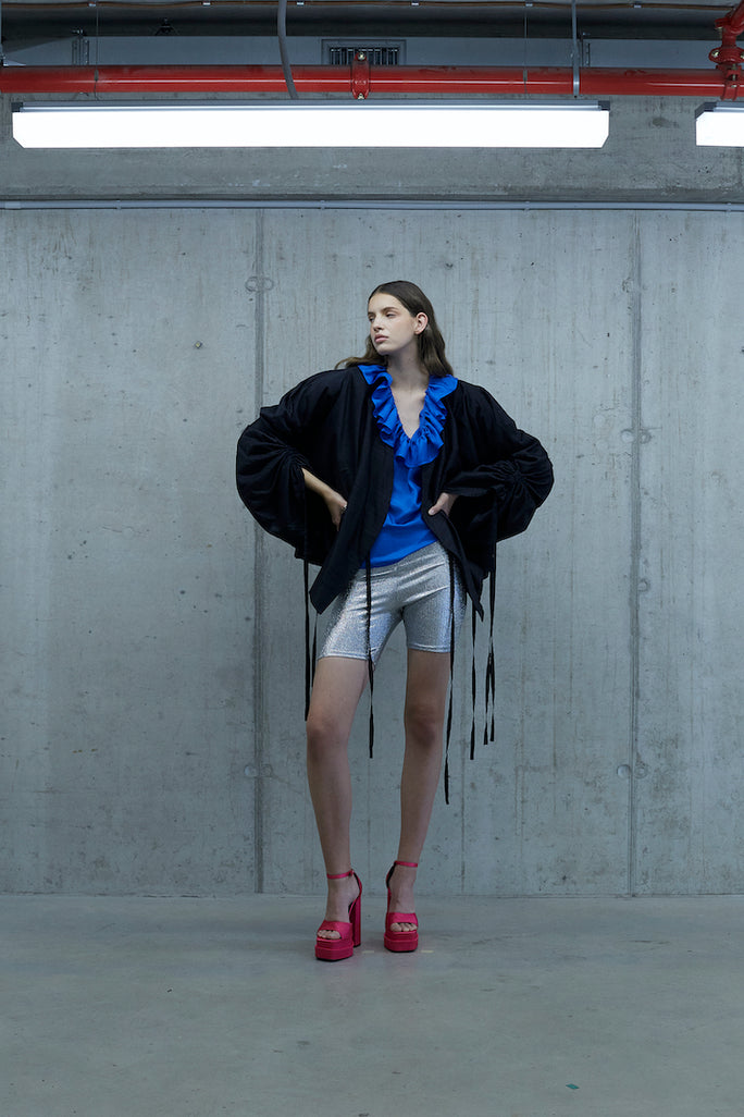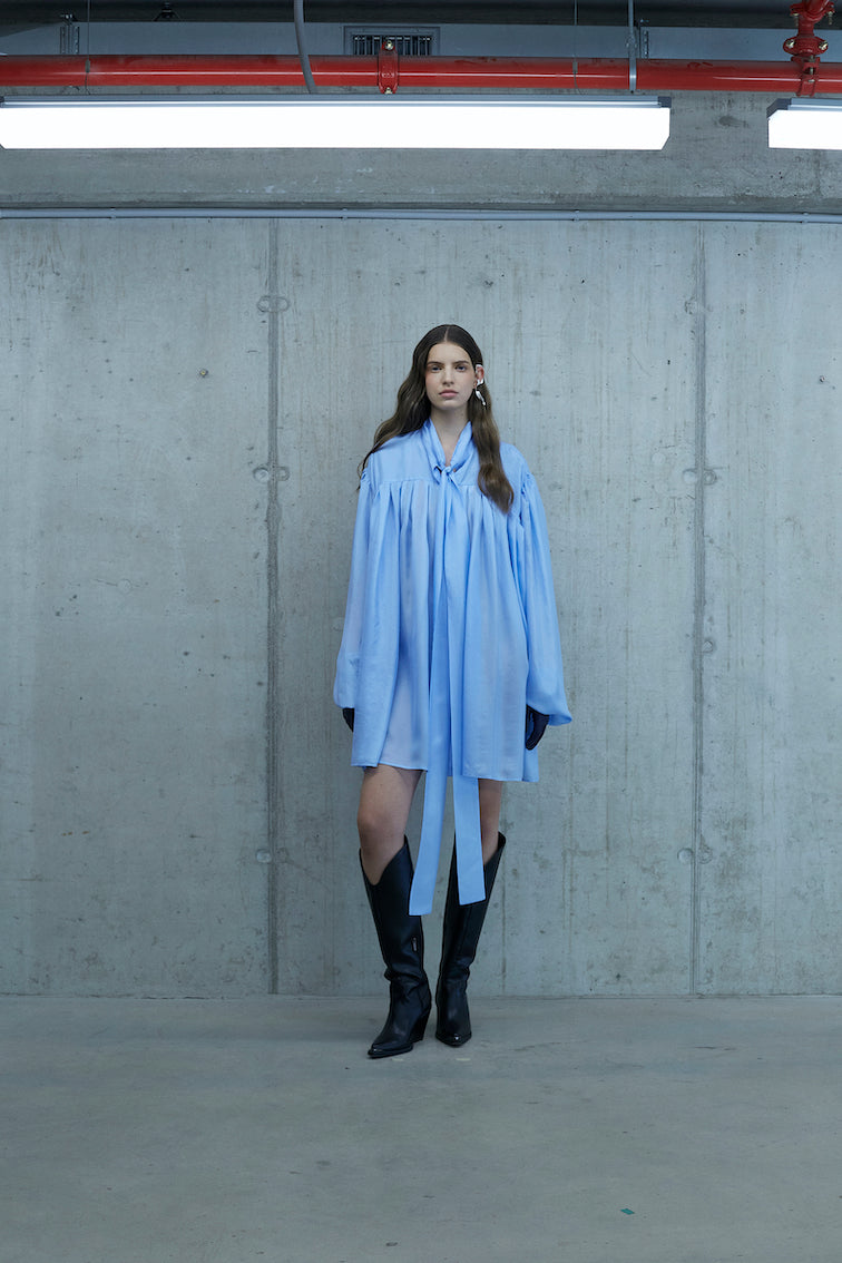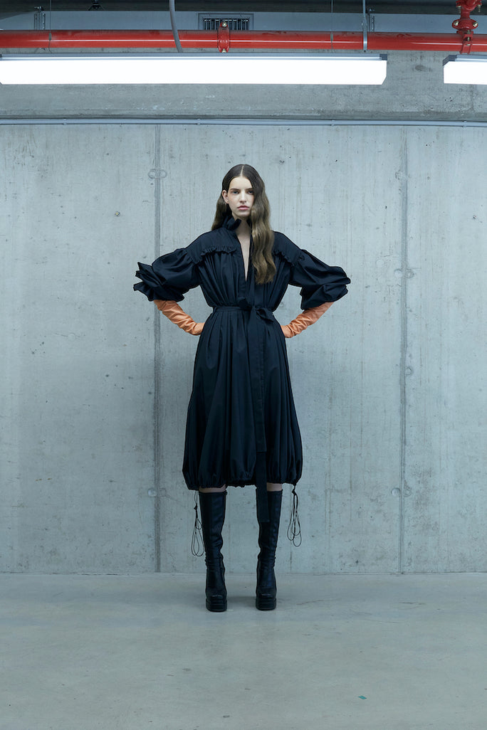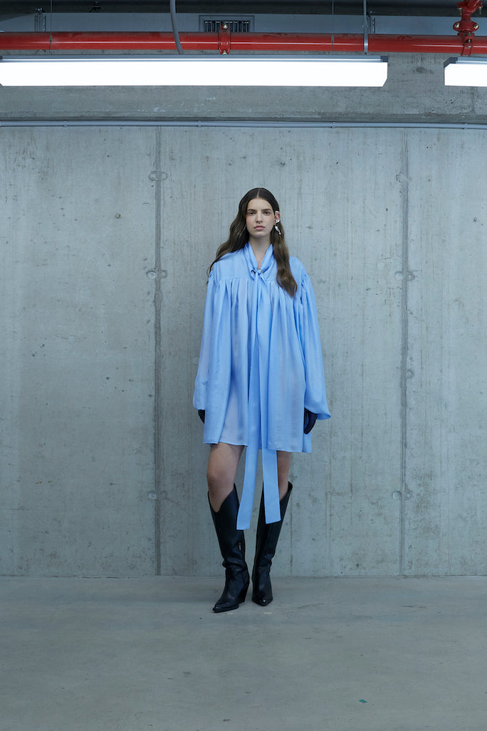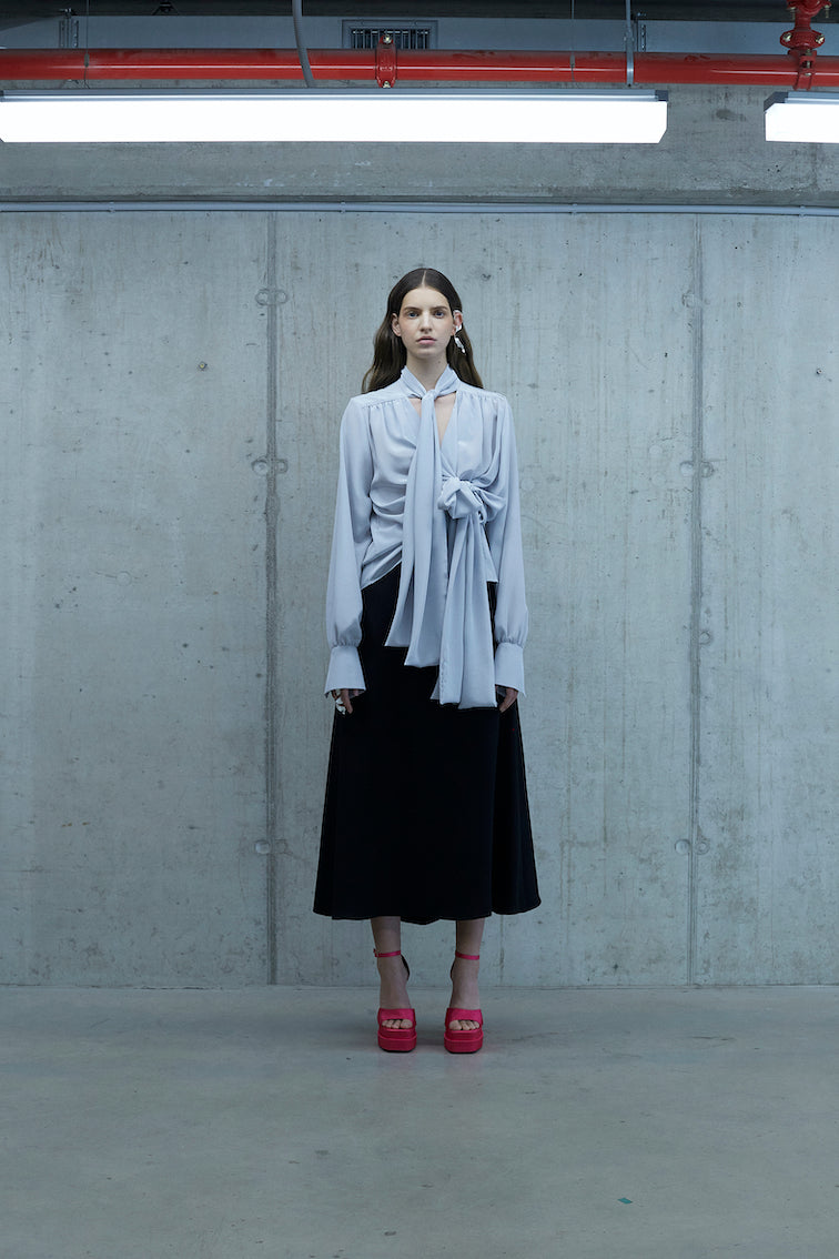 However, daylight is not the enemy here, just a continuation. In the same way, the new collection seamlessly follows on from the previous work of the designer, which gradually matures from expressively oversized forms to the sobriety of everyday life, which, of course, is emphasised by the quality of the deadstock material of the skirts and trousers.