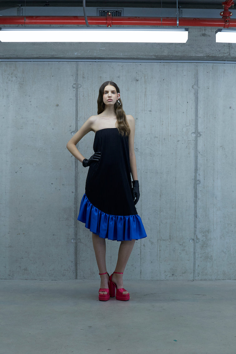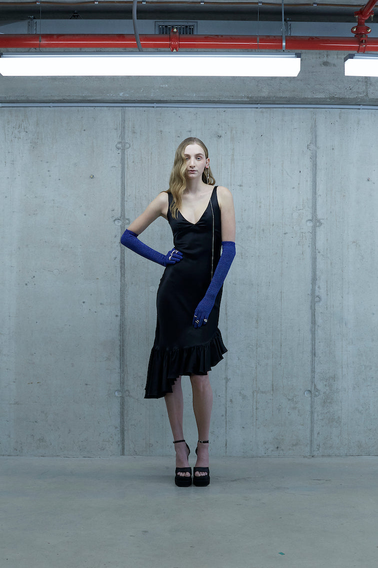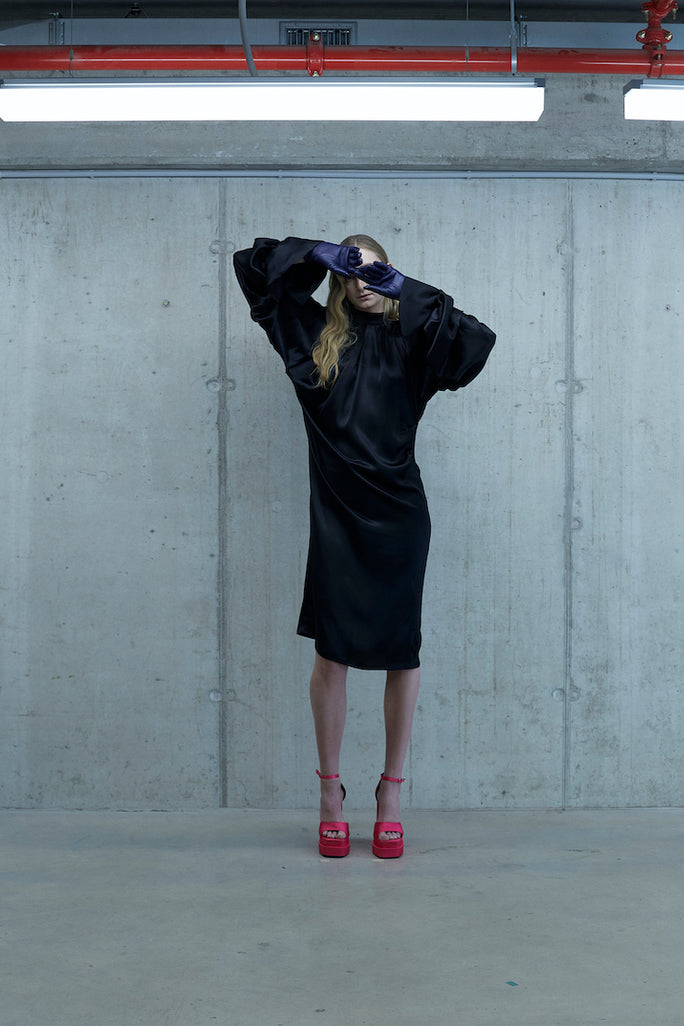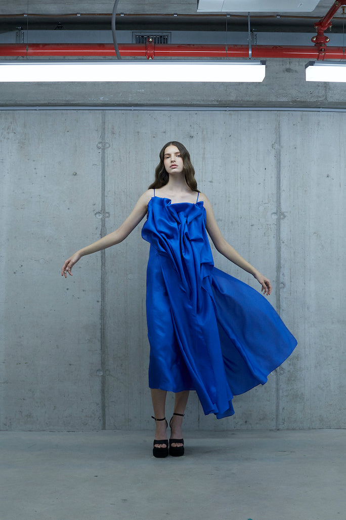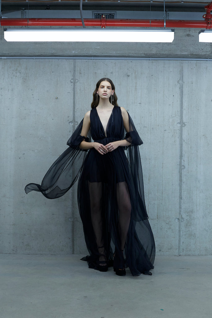 The basis of the Nocturno collection are clothes for special occasions, where the creation of the designer Natalie Dufková dances between the opulent baroque of playfully flying silk chiffon over the gothically understated and yet highly elegant austere line of satin.
